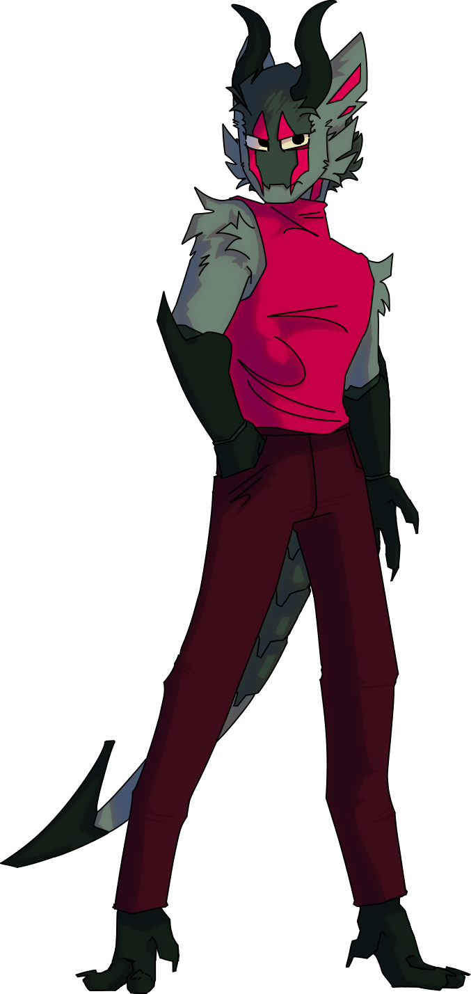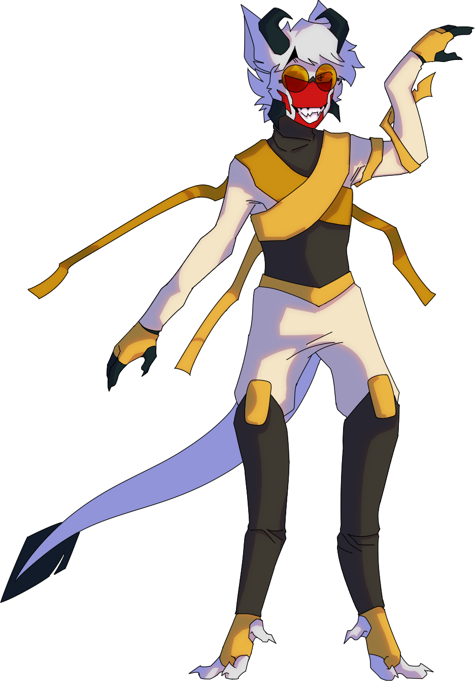 Description: Do you ever look back at something you admired and go "hey, wait, this is actually terrifying in retrospect"? Yeah, that's Brand's opinion of this dude. It's fairly public knowledge that his direct ancestor ended several paragon lineages by fusing with them and dying in the process (yes that's absolutely horrifying to think about). Vinylcheck is, in his own words, a way better person than his good-for-nothing ancestor and fights evildoers, but he's still a reasonably shady cadel.